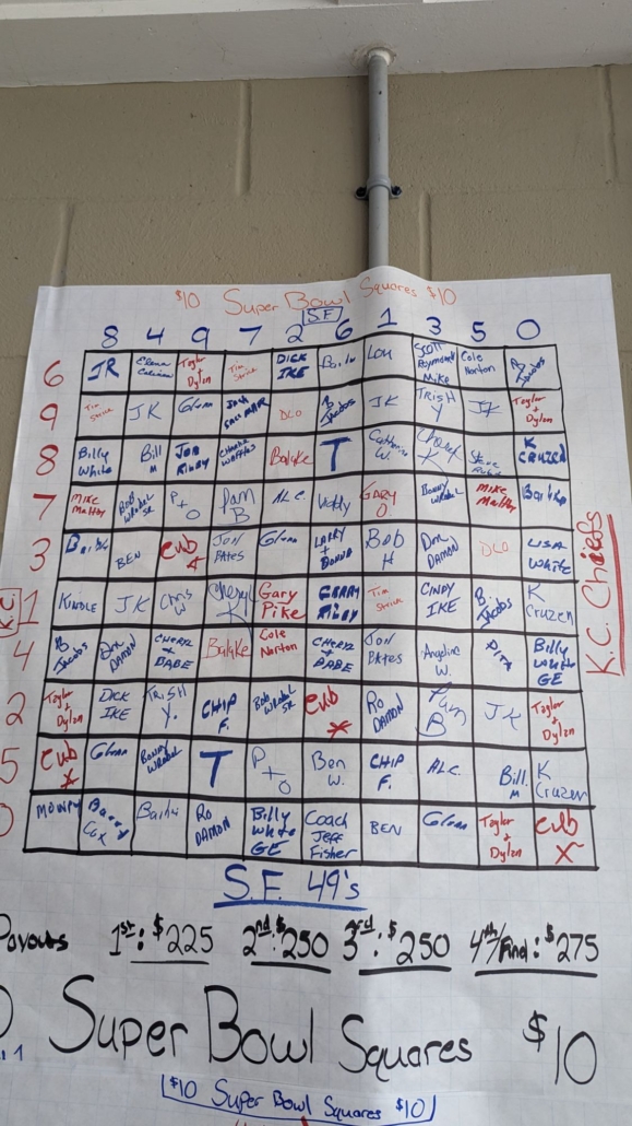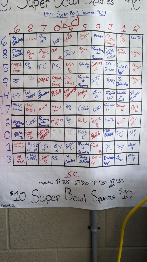 Super Bowl Squares…Good Luck everyone.